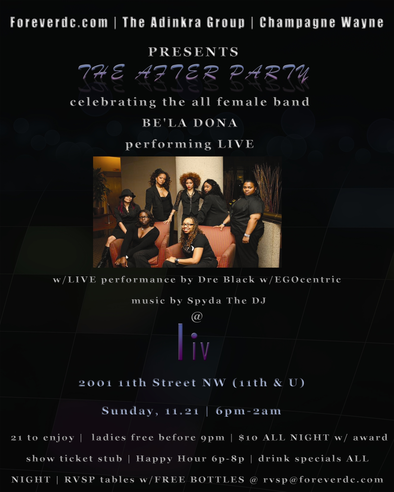 My band and I (Dre Black & EGOcentric) are privileged to be opening for them at Liv Night Club 2001 11th Street NW, WDC. If you are in the area, make sure to come out and support us!!