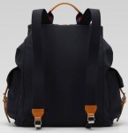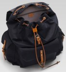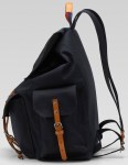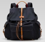 This season Gucci releases its latest rendition of the classic rucksack style backpack ($1,290). This navy cotton backpack features a blue and red signature web handle and light tobacco leather trim. It is also detailed with adjustable straps, a drawstring with a flap and buckle closure, leather bottom feet, and front/side/interior pockets.