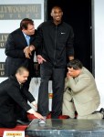 On Saturday, Kobe Bryant celebrated a special moment in Hollywood. He was the first athlete to have his hands and feet imprinted at the Grauman Chinese Theatre. The hand and footprint ceremony was hosted by Jimmy Kimmel. The ceremony is usually reserved for celebrities, an exception was made for the basketball great. Bryant signed his name in wet cement in front of the Grauman Theatre and underneath the signature were imprints of his hands and feet with his jersey number 24.