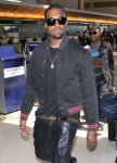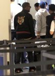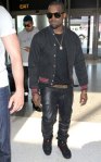 Kanye West got flashed by the paparazzi as he and his crew made their way through Los Angeles International Airport en route to Chile on Friday (April 1). The G.O.O.D. Music rapper donned sagging black leather pants with a studded belt, a jacket emblazoned with a tiger on the back, Air Jordans, and black shades while going through security.