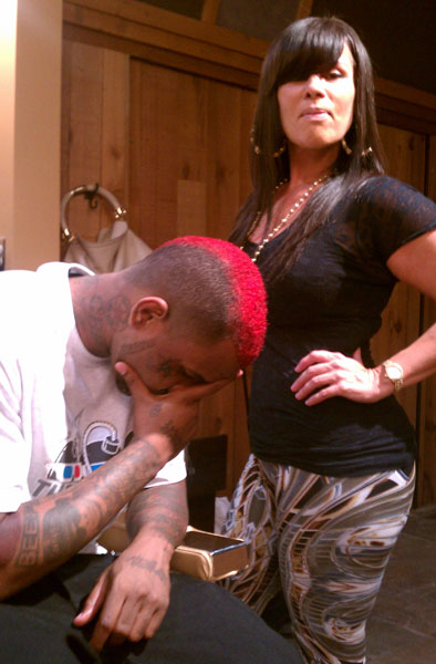 Let the promo begin. The leader of the “Red Nation,” Game, has dyed his hair red in honor of his upcoming R.E.D. Album. The West Coast rapper showed off his fiery red Mohawk courtesy of his barber, pictured. The first single from his album, the Lil Wayne-assisted “Red Nation,” is scheduled to hit iTunes on April 12 and a video will be shot with Wayne tomorrow in L.A.