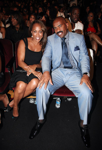 Steve-Harvey-and-his-wife-Majorie Published June 28, 2011 at 411 × 600 in A Inside Look at the BET AWARDS (From the Audience) ← Previous Next → <> at The Shrine Auditorium on June 26, 2011 in Los Angeles, California.