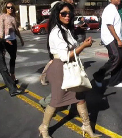 Lil’ Kim traveled across the country to show her loyalty for her friend Floyd Mayweather, Jr. The Queen Bee was in the courtoom as the boxing champ faced a judge in his domestic violence case in Las Vegas on Friday. Mayweather, who plead guilty, will have until June 1 to turn himself in to serve a 90-day jail sentence. Wearing high-heeled boots and holding a designer bag, Kim spoke briefly to the cameramen on her way out of the courthouse.