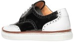 Dsquared2 brings the zoot suit wearing style of the jazz era into the year 2012 with these Leather Wingtip Sneakers retailing at $504. They feature black calf leather with contrasting white calf leather on the toe cap and back, wingtip and brogue stitching with perforations, and brown leather trim on the midsole.