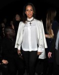 Just days before he presents his new womenswear line to the fashion world, Kanye West was front row at the Givenchy show at Paris Fashion Week. Yeezy sported a studded white sweater with stars as he soaked up some inspiration alongside Alicia Keys, who looked saintly in a white blouse and blazer with a cross hanging from her neck.