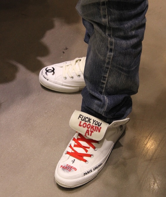 Pharrell-Williams-customized-shoes-1 Published March 17, 2012 at 576 × 680 in So Fresh: Pharrell Williams wears Customized Converse Addict by Nigo Sneakers ← Previous Next →