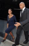 It was a family affair as Beyoncé stepped out with her mother Tina Knowles and mother-in-law Gloria Carter at a fundraiser for the Obama re-election campaign in New York City on Monday. The singing superstar beamed in a body-hugging blue dress by Victoria Beckham. Michelle Obama attended the cocktail reception hosted by Robert De Niro and his wife at Locanda Verde restaurant at the Greenwich Hotel. Tickets started at $5,000 for a photo with Mrs. Obama and $25,000 to mingle with her. Beyoncé is rumored to appear in Times Square tomorrow to unveil a series of billboards to promote her Memorial Day weekend shows at the $2.4 billion beachfront resort Revel in Atlantic City.