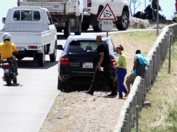 April 10, 2012: After reportedly recently renewing their wedding vows, Beyonce Knowles and Jay-Z stop to get a photo taken by their bodyguard while on vacation in St Barts.