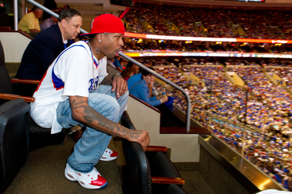 PHILADELPHIA, PA – MAY 23: Allen Iverson watches the game at the Wells Fargo Center on May 23, 2012 in Philadelphia, Pennsylvania. Iverson’s original Reebok Question re-launches Friday, May 25th for the first time since 1996. (Photo by Jeff Fusco/Getty Images for Reebok)