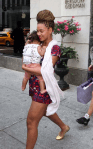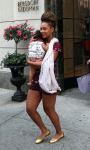 It’s been a while since we’ve gotten a glimpse of Blue Ivy Carter. Well, to be precise, since we’ve seen her little feet, since her parents Beyoncé and Jay-Z are always careful to keep her face covered. Beyonce and Blue were spotted out at Bergdorf Goodman NYC this afternoon. It is definitely too hot to be wrapped up in blankets, so I’m glad Blue got a chance to take in some air.