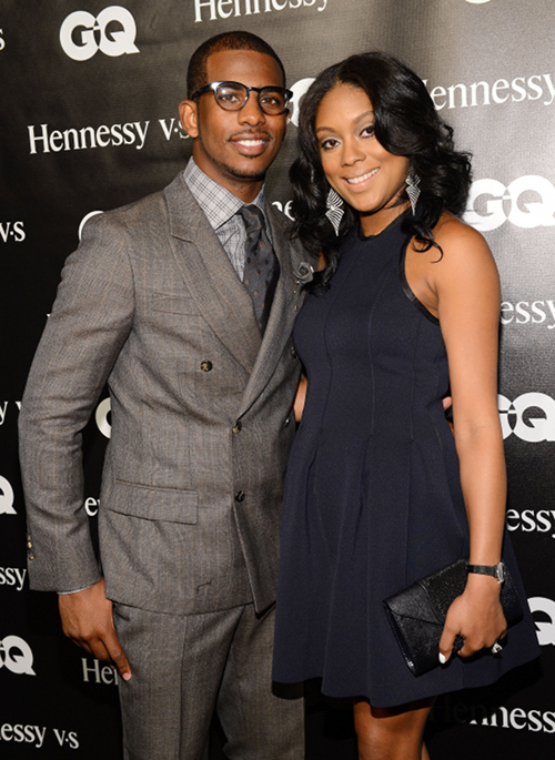 LOS ANGELES, CA – SEPTEMBER 24: Basketball player Chris Paul (L) and his wife Jada Crawley attend the GQ October Cover Party With Chris Paul Sponsored By Hennessy at Sayer’s Club on September 24, 2012 in Los Angeles, California. (Photo by Michael Kovac/WireImage)