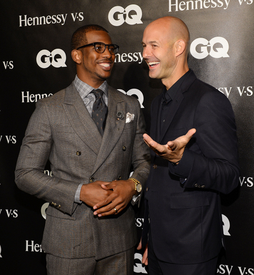 LOS ANGELES, CA – SEPTEMBER 24: Basketball player Chris Paul (L) and GQ VP & Publisher Chris Mitchell attend the GQ October Cover Party With Chris Paul Sponsored By Hennessy at Sayer’s Club on September 24, 2012 in Los Angeles, California. (Photo by Michael Kovac/WireImage)