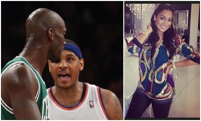 Two days ago Carmelo Anthony and Kevin Garnett got into a heated argument during the NY Knicks / Boston Celtics game and now it’s being reported that they were arguing over Carmelo’s wife LaLa.