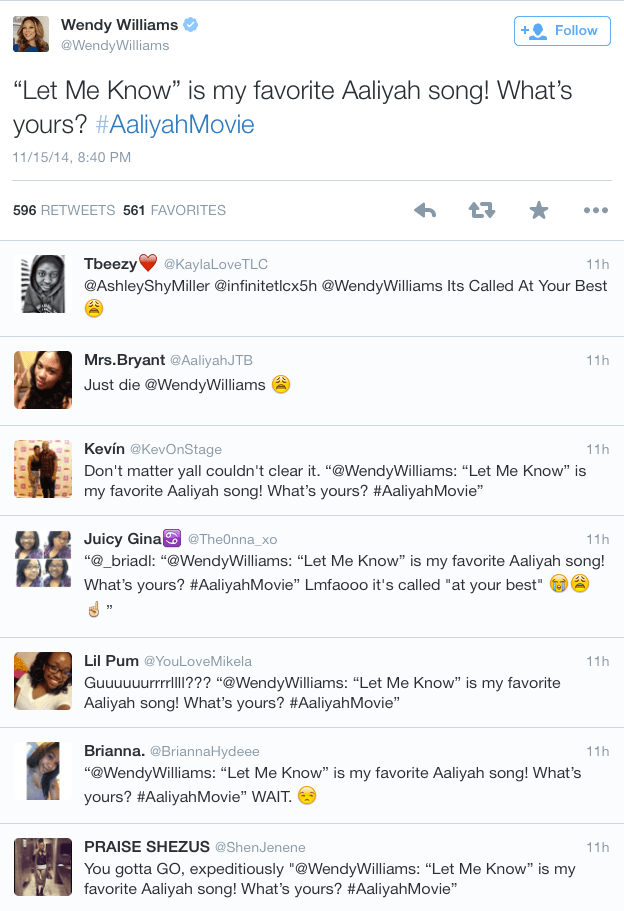 Adding to the comedy of errors Wendy Williams tried to Tweet her favorite Aaliyah song during the broadcast but apparently she didn’t even know the name of it. The response was brutal.