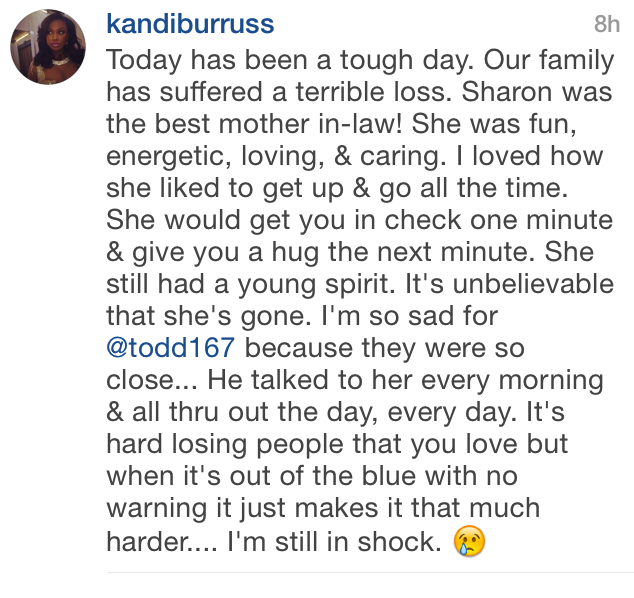 Our condolences to Kelly Rowland and her family.
