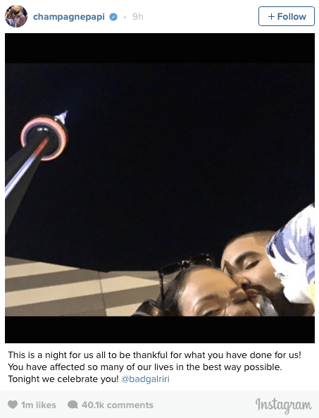 On Sunday night after presenting Rihanna with the MTV Michael Jackson Video Vanguard Award Drake posted a candid photo of himself and Rihanna on Instagram that eagle-eyed fans realized was taken outside.