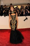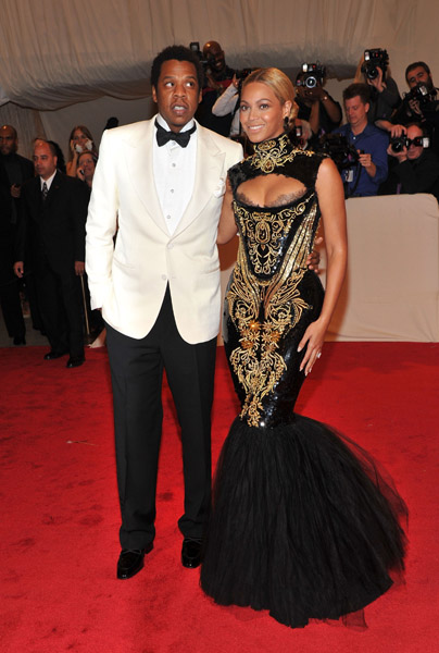 Beyoncé and Jay-Z hit the red carpet at the Costume Institute’s “Alexander McQueen: Savage Beauty” Gala at the Metropolitan Museum of Art in New York City today (May 2). All eyes were on hip-hop’s royal couple as they posed for photos together, Jay in a black-and-white tux and his wife in an ornate black-and-gold Pucci gown. The fashion and entertainment worlds collided at the star-studded event, which was dedicated to the memory of the late designer Alexander McQueen.