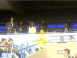 Beyonce danced her life away and Jay-Z and Ty Ty just nodded along to Coldplay’s ‘Fix You’ in Mannchester June 10th 2012. The Carters are best friends with front man Chris Martin and his wife Gwyneth Paltrow.