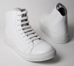 For the Fall/Winter 2010 collection, Marc Jacobs’ sneaker line-up includes these suede and leather high-tops ($447). They feature mostly suede with a leather toe cap and a logo on the side. There’s also a white version ($314) that has a full leather upper.