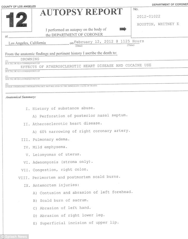 The level of Whitney’s drug abuse was was evident due to a ‘perforation of posterior nasal septum.’