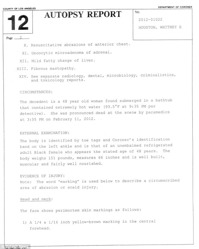 They do note that the water in the bath were Whitney was found, with some evidence of trauma including a cut lip, was ‘extremely hot.’